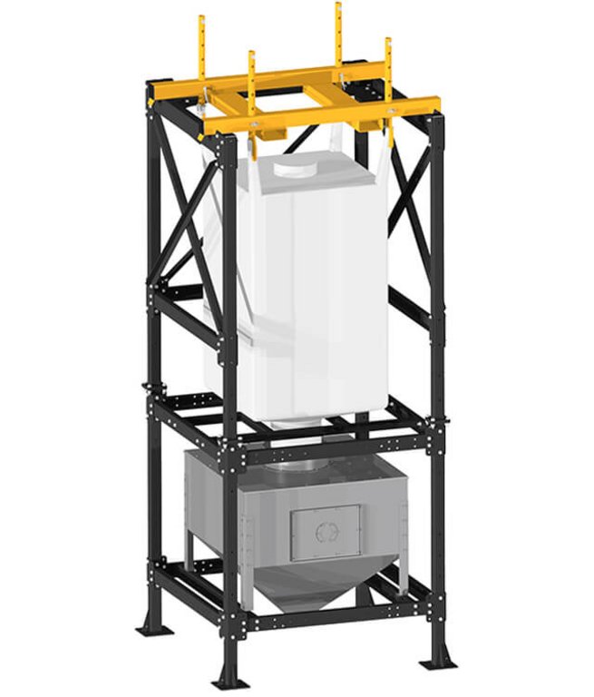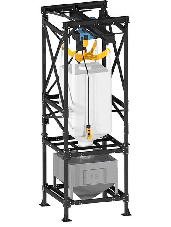 This big bag emptying station is only suitable for free-flowing granules. The big bag can be conveniently attached to a forklift or an electric crane. The 1000-l container is generously dimensioned.
