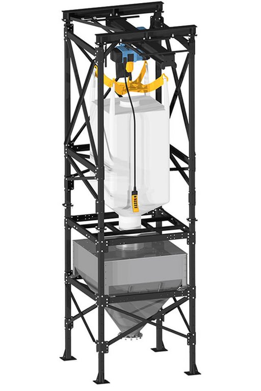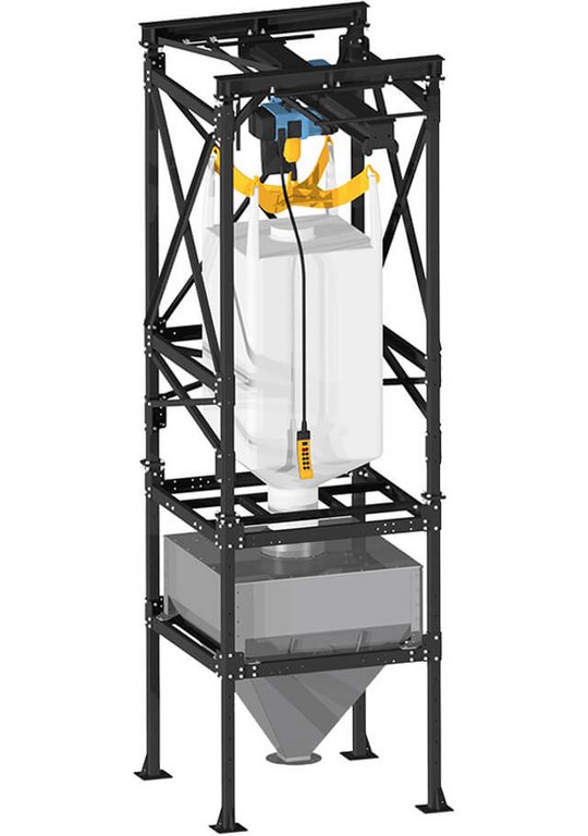 This big bag emptying station is suitable for free-flowing regrind and granules. The big bag can be conveniently attached to an electric crane.