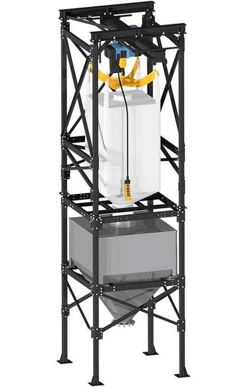 This big bag emptying station is suitable for free-flowing regrind and granules. The big bag can be conveniently attached to an electric crane.