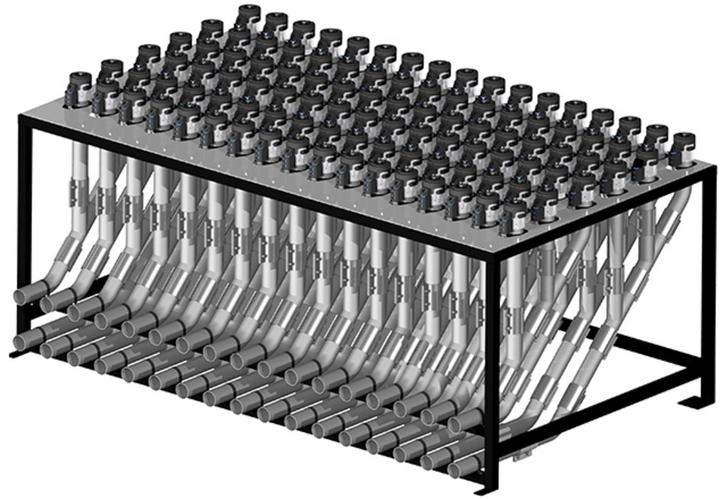 A fully-fledged coupling table has up to 12 inlets and up to 72 outlets at the top with connection options for hoses. The branch modules can also be supplied in a reinforced version. If you process abrasive plastic granules with a high glass fibre content, we highly recommend this option! The outlets can optionally be equipped with camlock couplings or with more user-friendly Twist couplings. The TWIST couplings can be equipped with RFID technology.