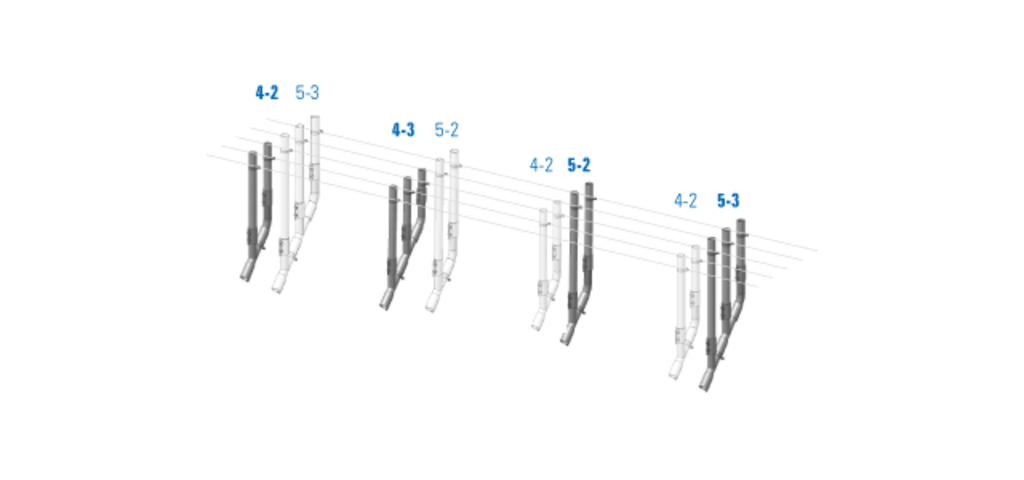The distributor spacing is 150 mm when using camlock or Storz couplings. When using our TWIST couplings (up to Ø 50 mm), the distributor spacing can be reduced to 100 mm. This minimises the space required for the coupling table and increases operating convenience – to name just two advantages of using TWIST couplings.