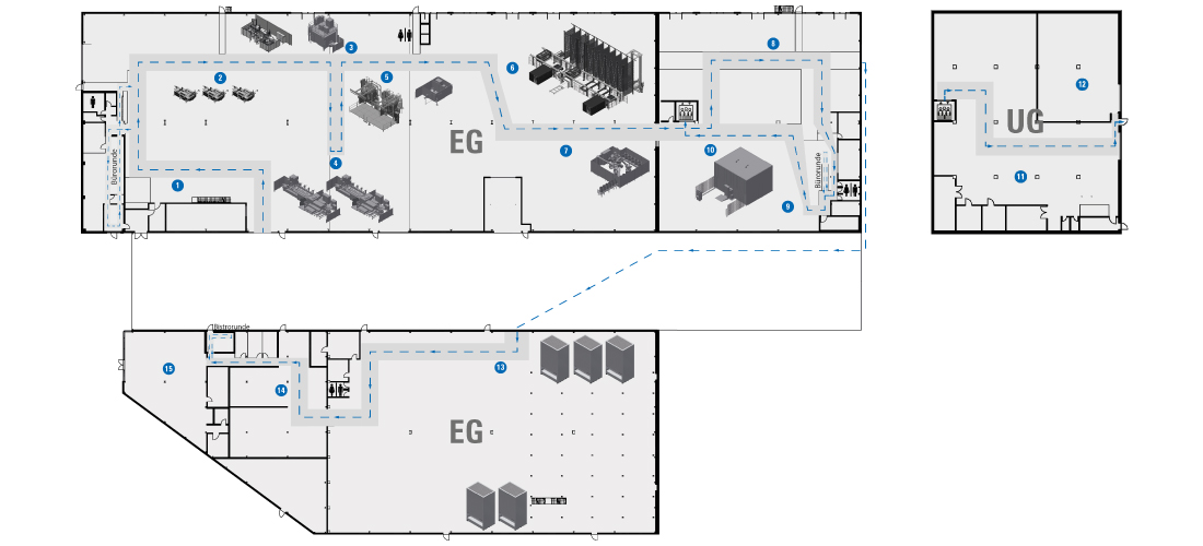 Während des überwiegend barrierefreien Rundgangs erleben Sie, wie wir arbeiten, produzieren und gemeinsame Zeit verbringen. Sprechen Sie gerne unsere Mitarbeiterinnen und Mitarbeiter an, wenn Sie Fragen zu den Abteilungen oder Maschinen haben.