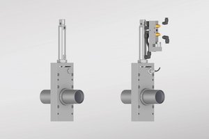 Bislang erfolgte die Stellungsabfrage des Absperrschiebers (AS.10) durch zwei Endlagensensoren am Pneumatikzylinder. Der geringere Schaltbereich und die aufwendige Befestigung der Endlagensensoren waren ein Manko und mitunter der Anlass für die Produktüberarbeitung. Die neue Version des Absperrschiebers hat nur noch einen Sensor zur Stellungserfassung. Dessen Position ist durch eine Gewindebohrung im Schiebergehäuse fest vorgegeben. Die Befestigung ist sehr einfach und kann ohne spezifische Kenntnisse erfolgen.